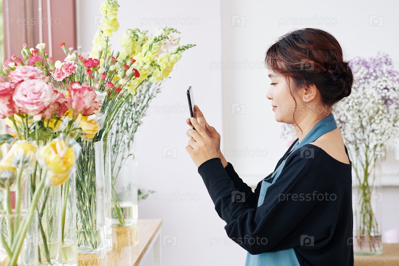 Цветочник фотографирует цветы для социальных сетей