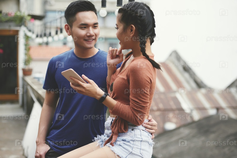 Азиатская пара проводит время на свежем воздухе