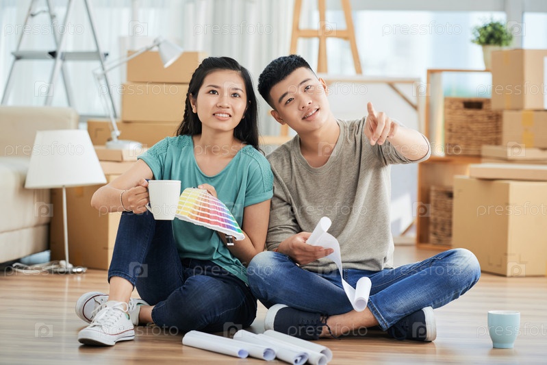 Молодая пара обсуждает ремонт