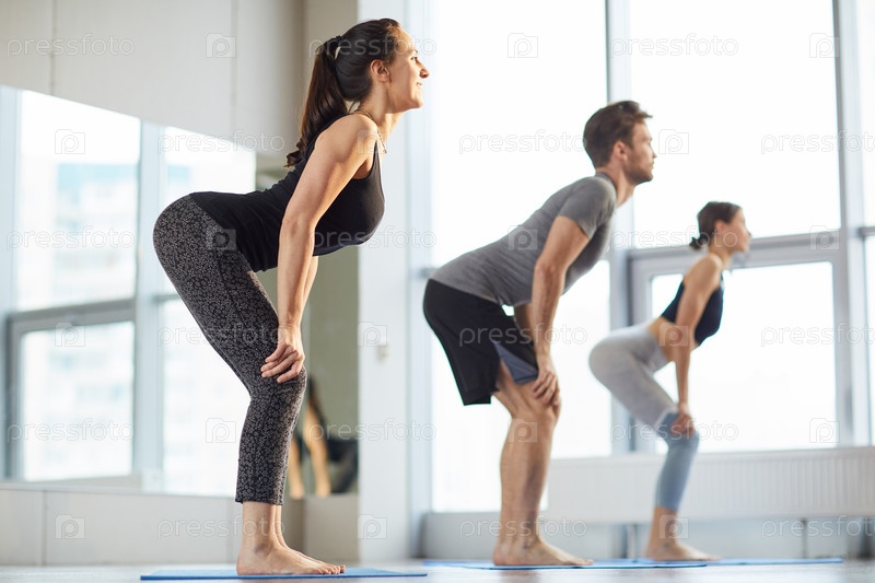 Студенты йоги практикуют упражнения на спине