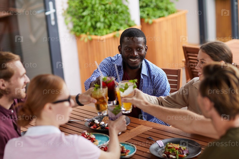 Друзья наслаждаются коктейлями в кафе