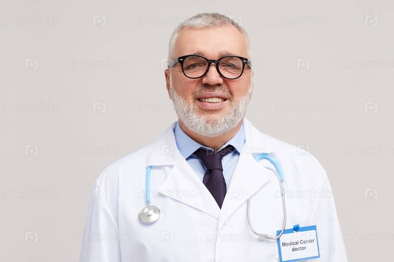 Зрелый врач в белом пальто