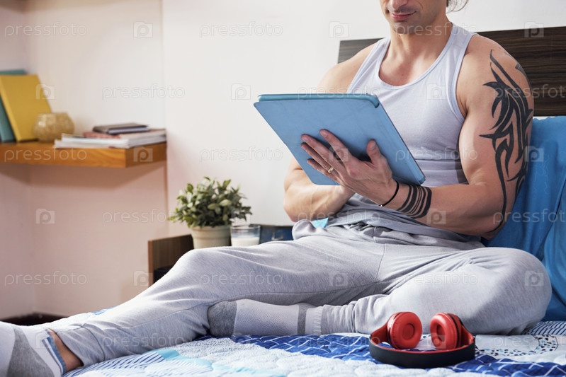 Мужчина отдыхает с планшетным компьютером