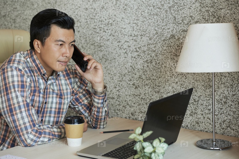 Предприниматель звонит по телефону