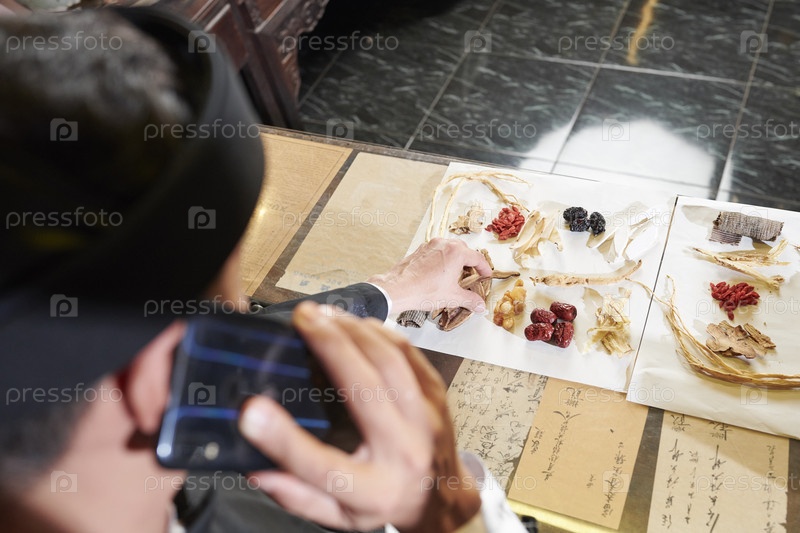 Практикующий китайскую медицину выбирает сухие корни и ягоды