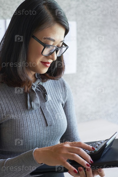Деловая женщина, рассчитывающая финансы
