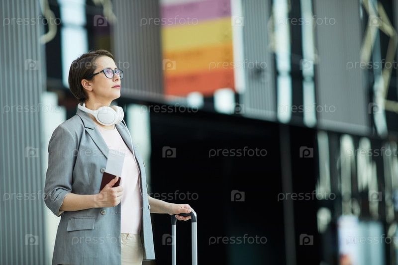 Современная женщина читает расписание полетов