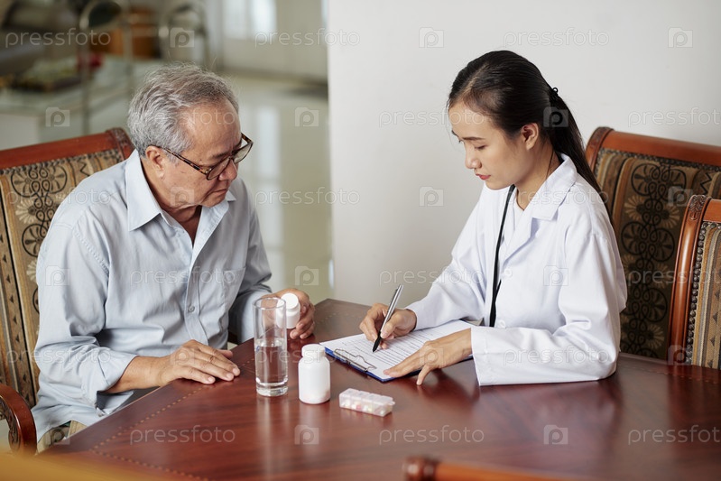 Врач, назначающий лекарства в кабинете