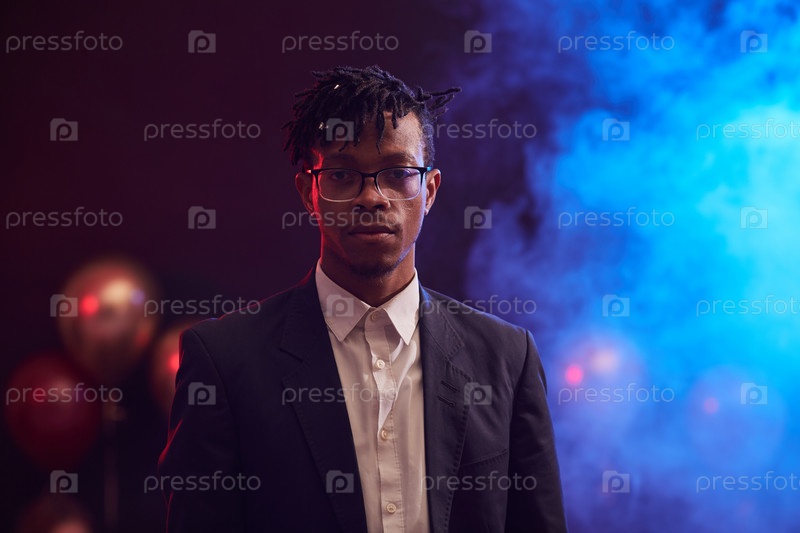 Красивый африканский мужчина позирует на вечеринке в ночном клубе