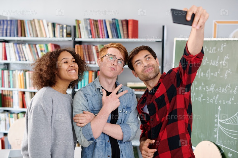 Три современных участницы группы позируют для селфи