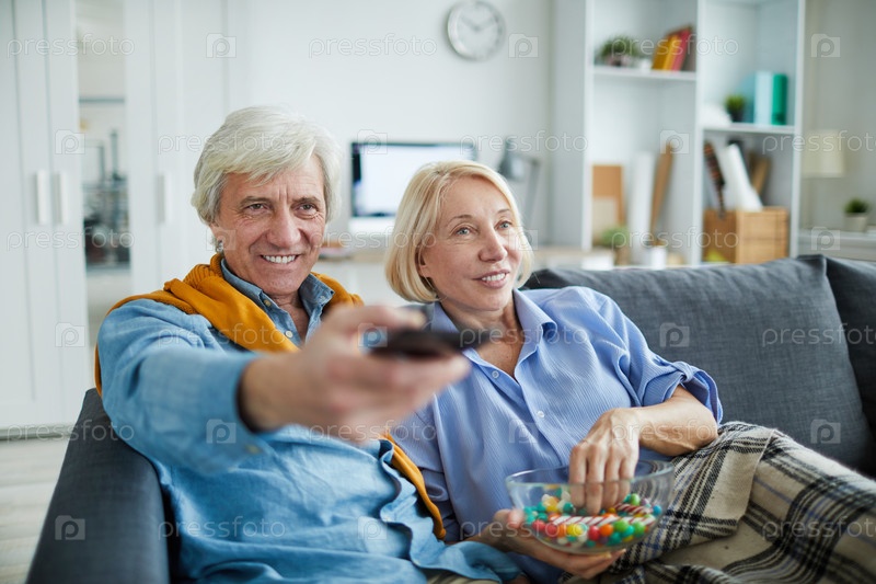 Зрелая пара смотрит телевизор