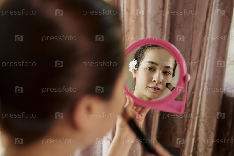 Красивая женщина, наносящая фундамент