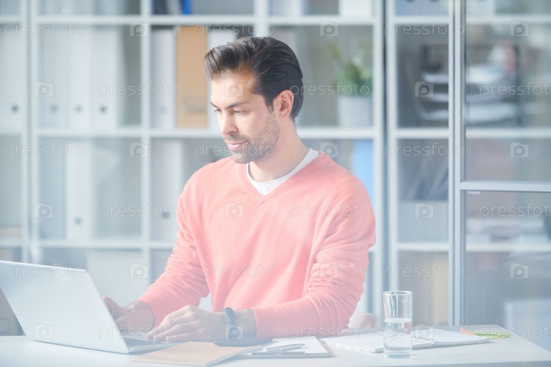 Молодой бизнесмен в пуловере ищет идеи для нового проекта