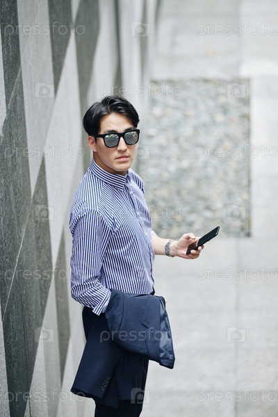 Серьезный мужчина со смартфоном