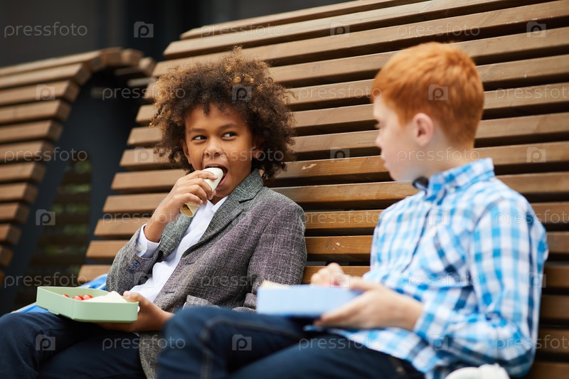 Дети обедают на свежем воздухе