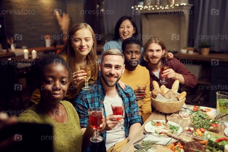 Друзья делают селфи на вечеринке