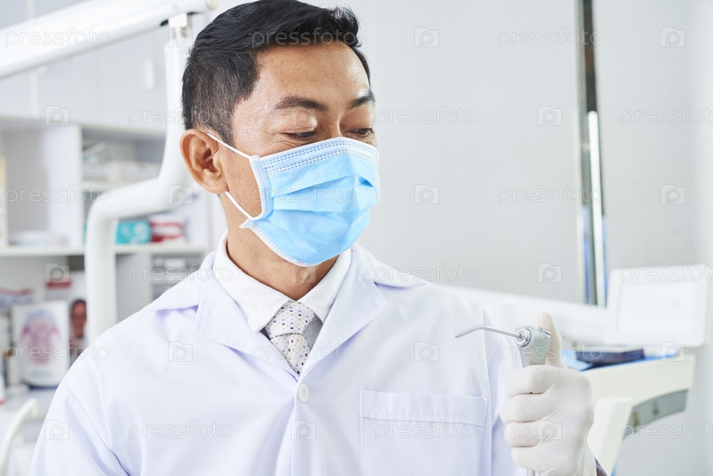 Стоматолог, использующий зубную дрель