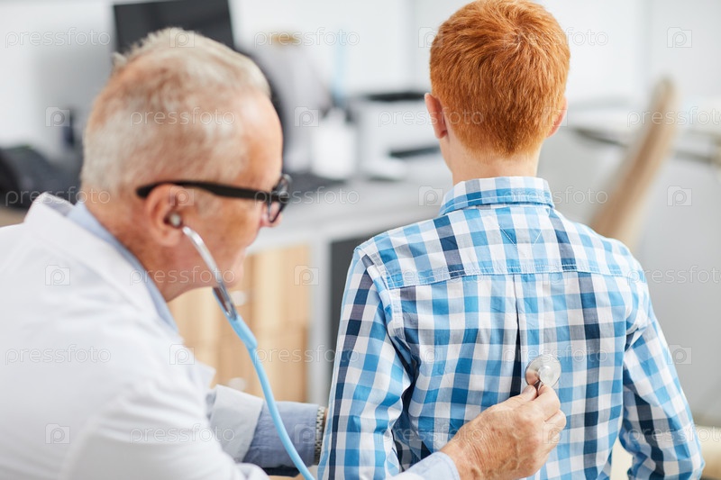 Педиатр с использованием стетоскопа