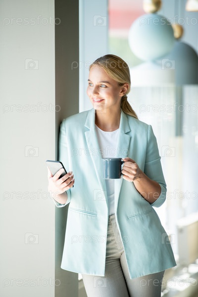 Счастливая девушка в стильных повседневных нарядах смотрит в окно, отдыхая в кафе