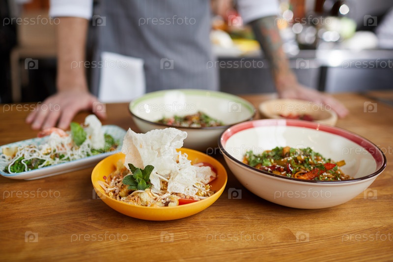 Еда на столе в азиатском ресторане