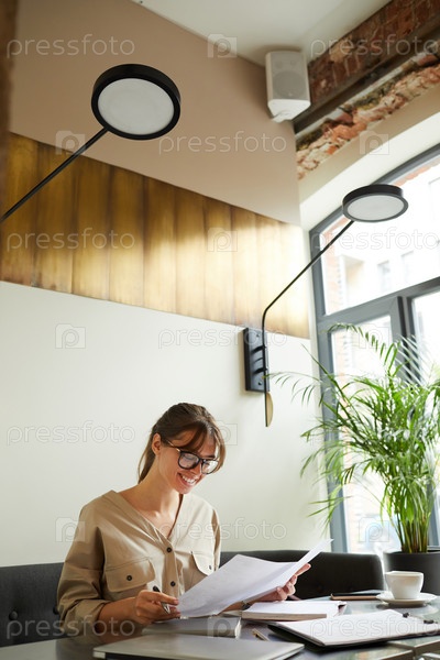 Молодая женщина, работающая с документами
