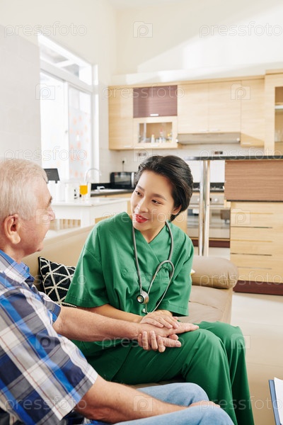 Медсестра разговаривает со старшим пациентом дома
