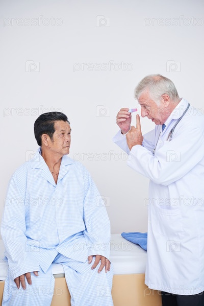 Офтальмолог разговаривает со старшим пациентом