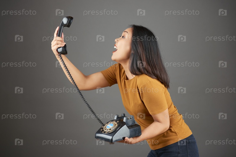 Женщина держит ретро-телефон