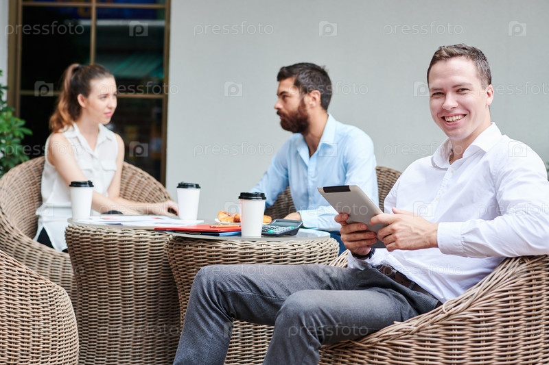 Молодой предприниматель с планшетным компьютером