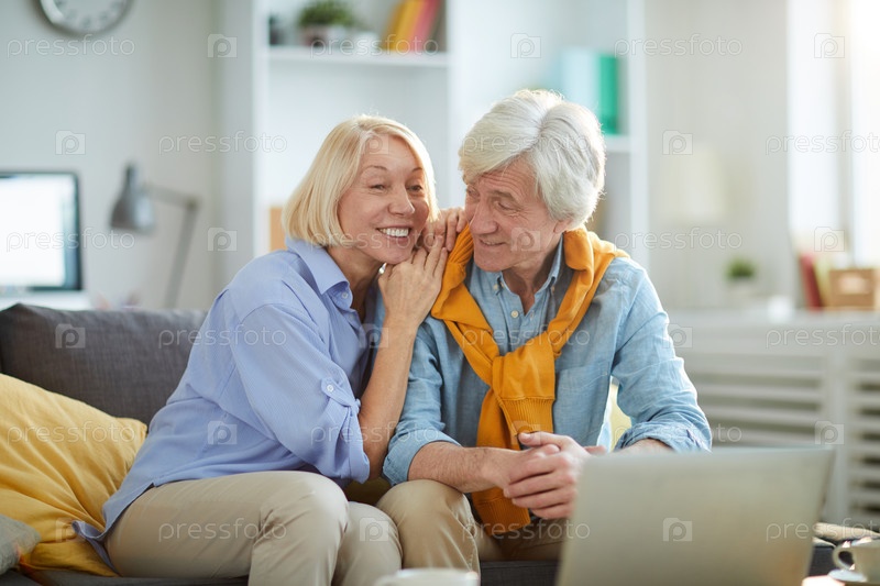 Улыбающаяся пожилая пара дома