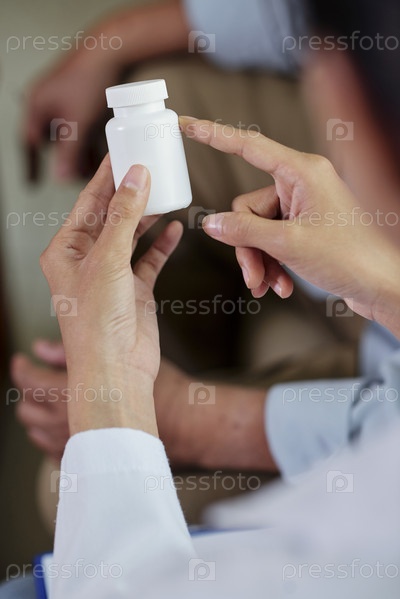 Врач держит контейнер с таблетками