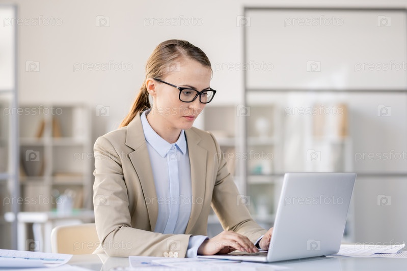 Загруженная женщина готовит презентацию на ноутбуке