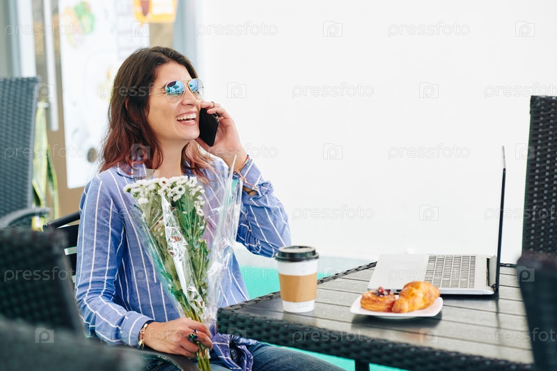 Счастливая женщина, разговаривающая по телефону