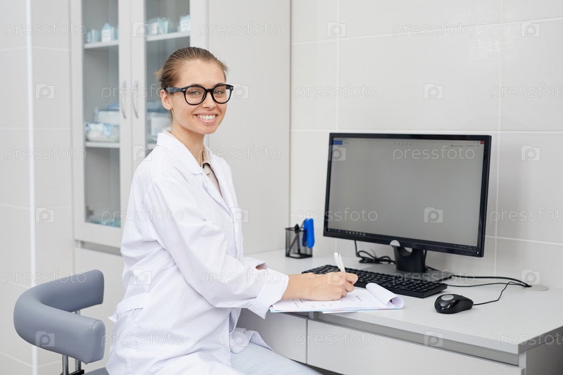 Женщина-медик за столом