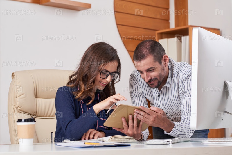 Коллеги по работе с цифровыми планшетами
