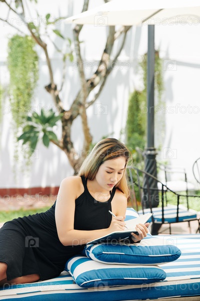 Деловая женщина делает заметки в журнале