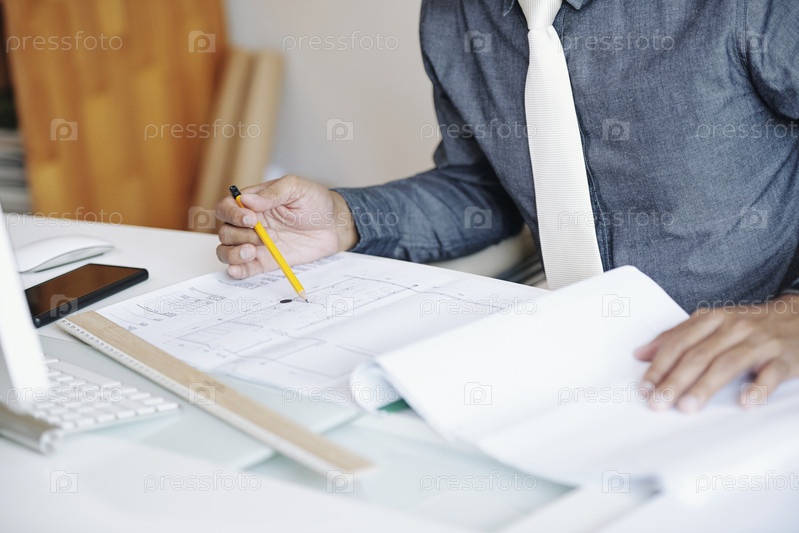 Инженер, изучающий чертеж