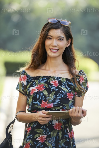 Веселая женщина с планшетным компьютером