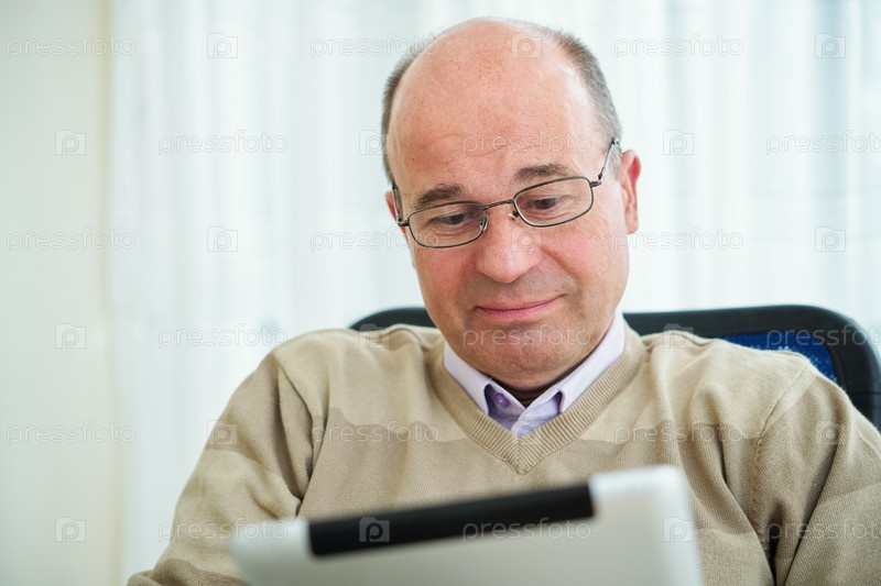 Зрелый мужчина читает электронную книгу