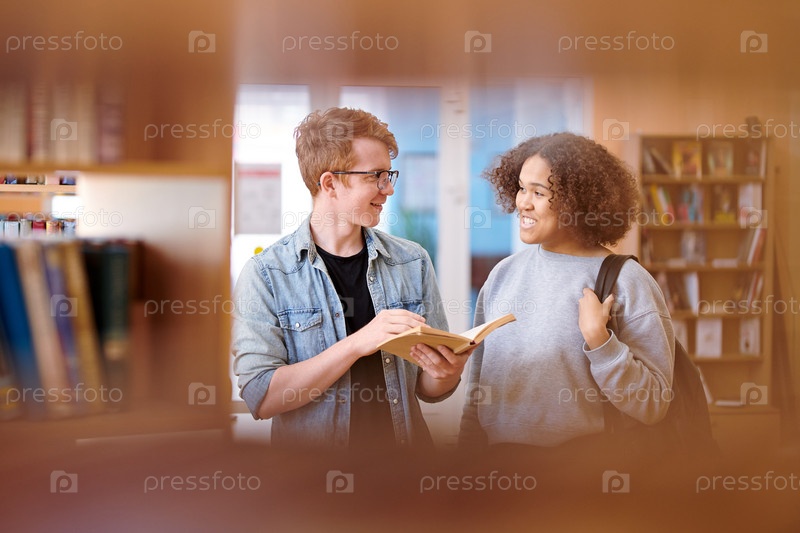 Счастливая молодая межкультурная пара обсуждает детали истории