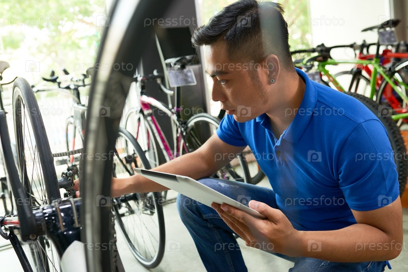 Владелец магазина проверяет велосипеды