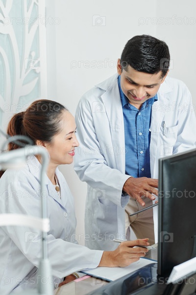 Два врача обсуждают в команде