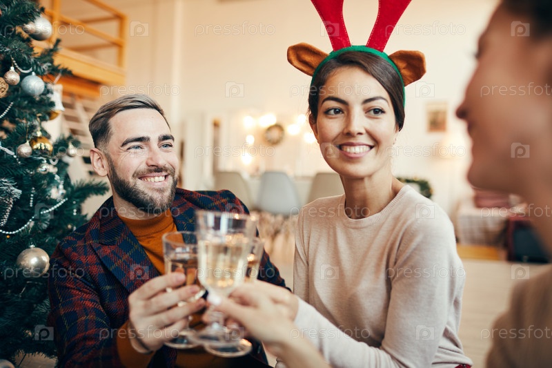 Группа друзей, наслаждающихся рождественской вечеринкой