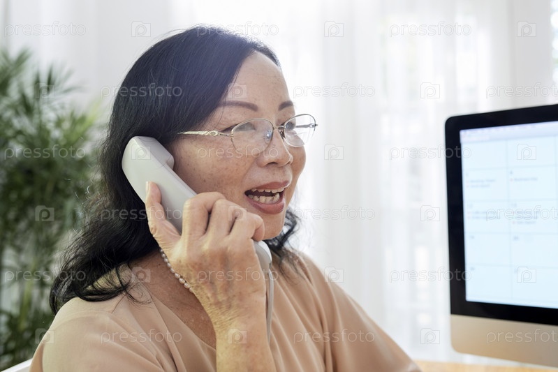 Зрелая деловая женщина, разговаривающая по телефону