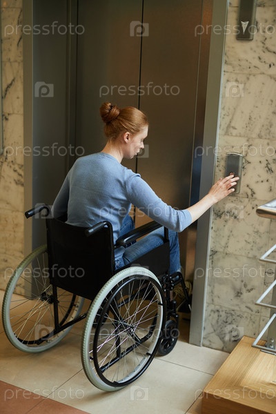 Инвалидная женщина, использующая лифт