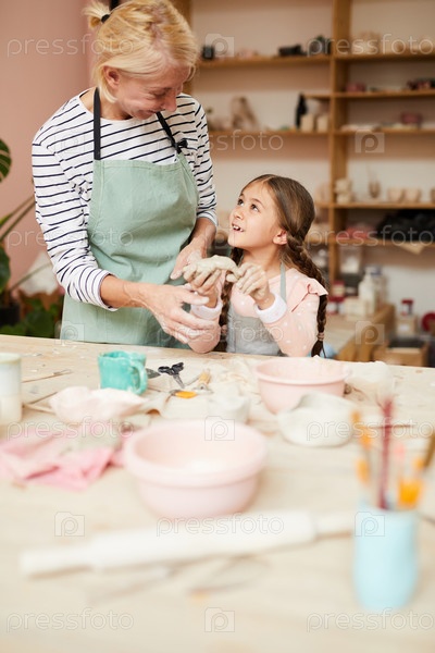 Маленькая девочка наслаждается керамикой