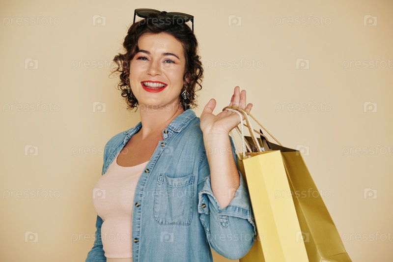 Женщина позирует с сумками для покупок