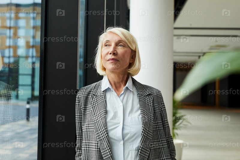 Пенсивная зрелая деловая женщина в офисе