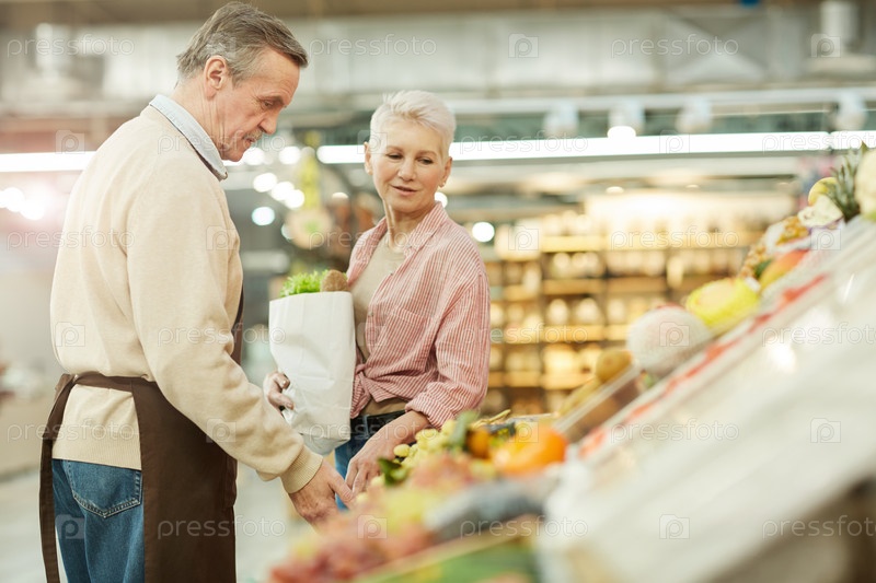 Зрелая женщина покупает продукты на рынке
