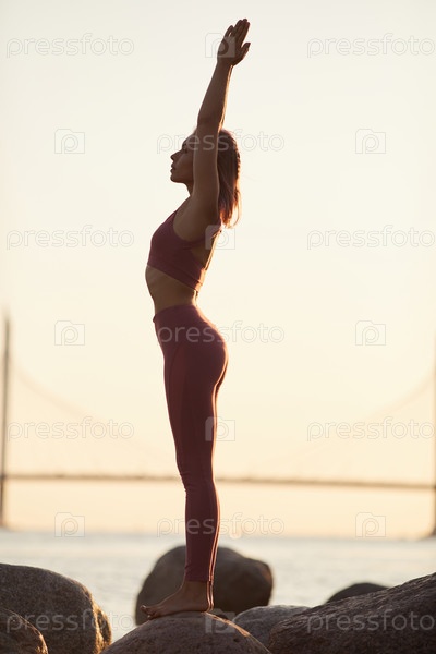 Женщина медитирует на береговой линии